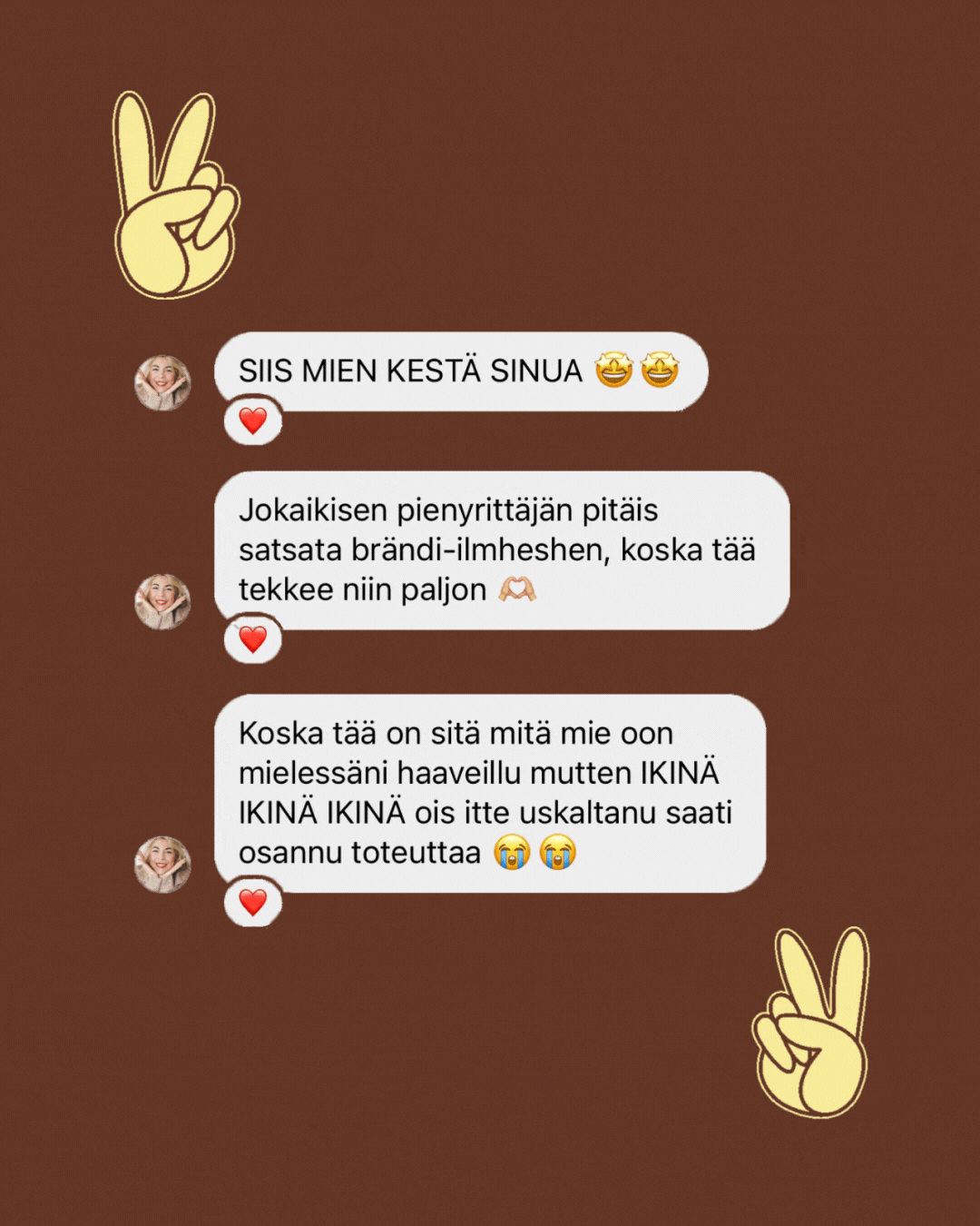 “MITÄ IHANAA SIE OOT TEHENY 🤩 Tuli iha liikutus ko avasin nämä! Apua! Sie toteutat just minun visioita, ookhan sie minun pään sisässä? 😅 Mutta rohkeammin! Just silleen niinku mie oikeasti haluan, mutten välttis itte uskaltais.